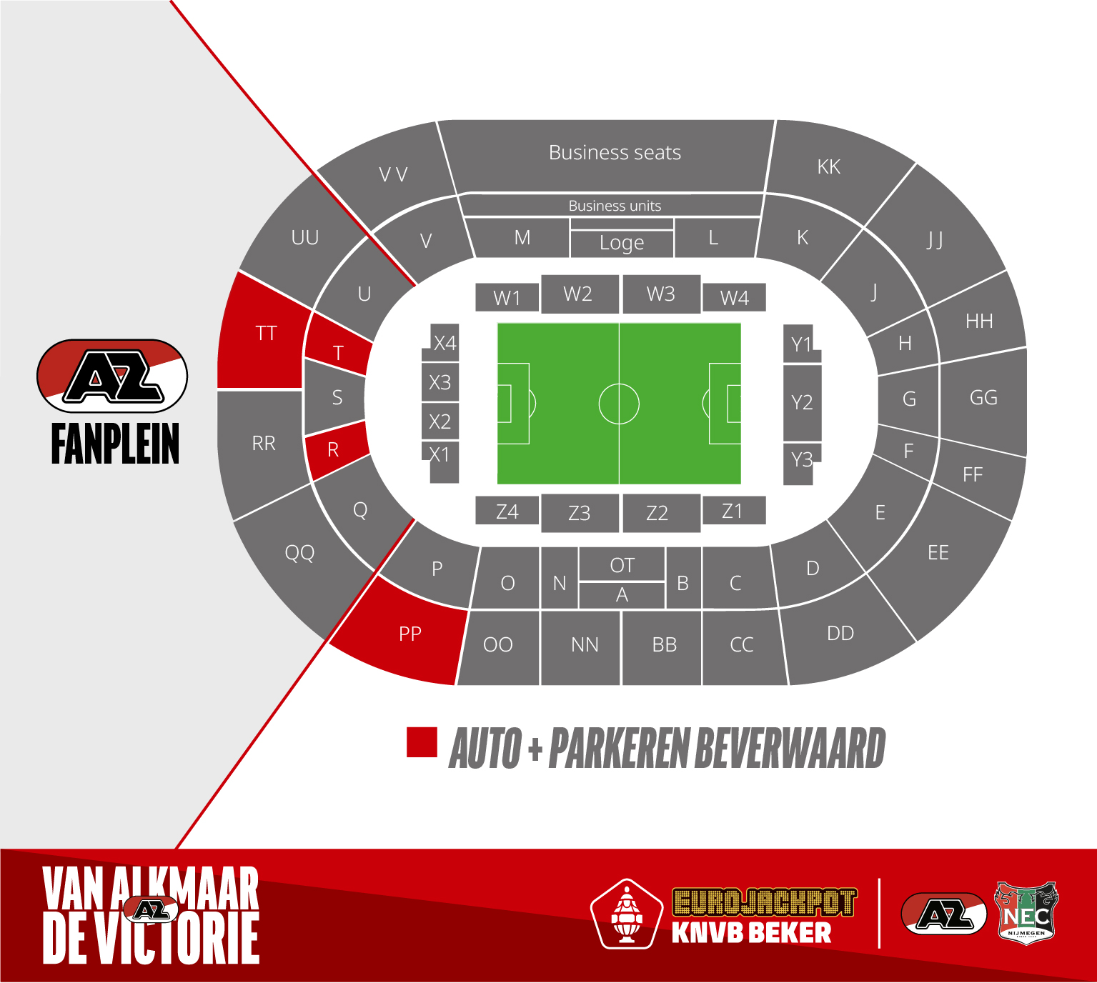 Beschikbare vakken voor vervoer per auto in de Kuip