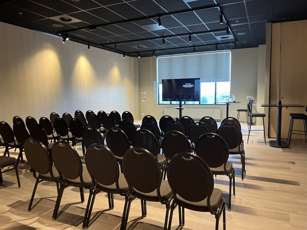 Een intieme ruimte, inclusief bar, audiovisuele ondersteuning en prachtig uitzicht op het hoofdveld.Lees meer