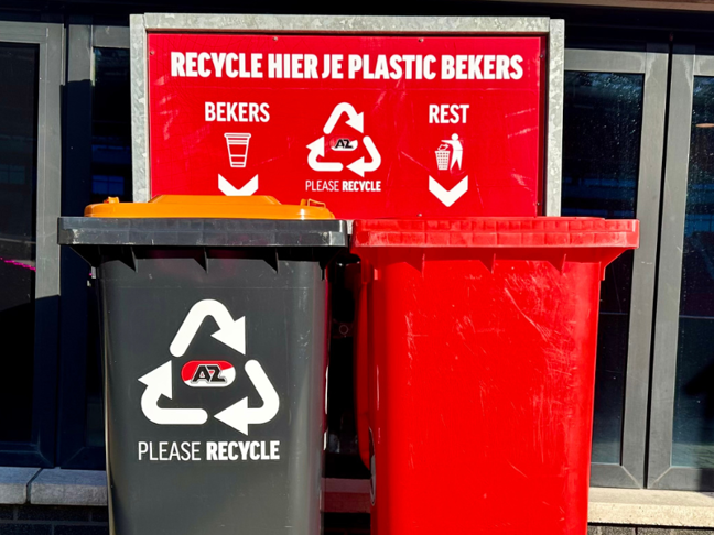 ALKMAAR- AZ start met ingang van januari met het gescheiden inzamelen van plastic bekers die uitgegeven en gebruikt worden in het AFAS stadion. In de Alkmaarse thuishaven staan vanaf AZ - PEC Zwolle oranje containers om de plastic bekers te deponeren.