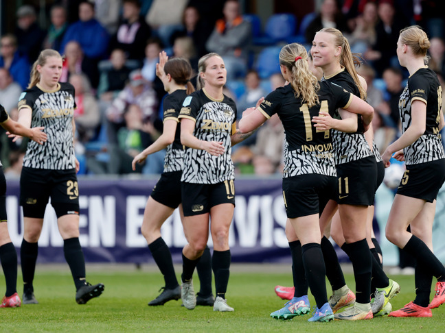 HEERENVEEN- De AZ Vrouwen hebben woensdagavond een indrukwekkende uitoverwinning behaald tegen sc Heerenveen. In Friesland keek het team van trainer Wouter de Vogel al vroeg tegen een 2-0 achterstand aan, maar wist de wedstrijd te kantelen en met een 2-3 zege huiswaarts te keren. Bekijk hier de samenvatting van de wedstrijd.