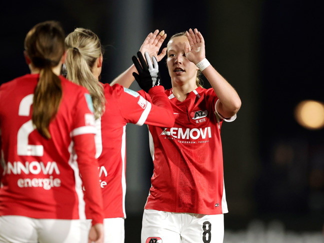 VELSEN-ZUID- De AZ Vrouwen hebben woensdagavond een zwaarbevochten 4-5 overwinning geboekt op Telstar. Het duel begon oorspronkelijk op 1 februari, maar werd na 68 minuten stilgelegd door scheidsrechter Nurettin Eren vanwege gladheid en bevroren delen van het veld. Op dat moment stond AZ met 2-4 voor. Bij de hervatting wist Telstar snel de stand gelijk te trekken, maar een beslissend doelpunt van Desiree van Lunteren bezorgde de Alkmaarders alsnog de drie punten. Bekijk hier de samenvatting van de wedstrijd.