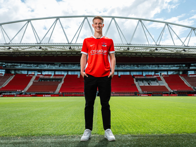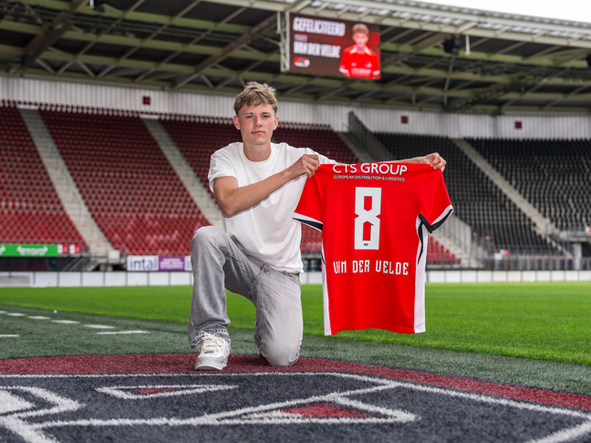 ALKMAAR- Adam Ouaziz heeft maandagmiddag zijn handtekening gezet onder zijn eerste profcontract. Hiermee ligt de aanvallende middenvelder tot medio 2028 vast in Alkmaar.
