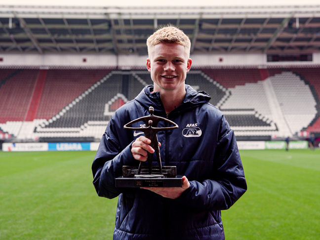 ALKMAAR- Kees Smit heeft de Young Talent Award 2025 van het NOC*NSF gewonnen. Deze prijs ging pas één keer eerder naar een voetballer en werd in het AFAS Stadion uitgereikt door Ron Vlaar. AZ Media sprak met de middenvelder over dit bijzondere moment.