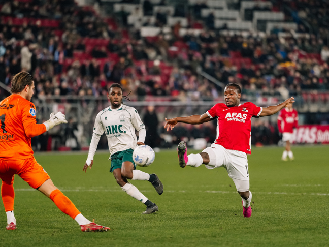 De Alkmaarders moesten in de achtervolging en kwam al snel weer op gelijke hoogte. In de 28e minuut werkte doelman Mark de Vries een voorzet van Iman Griffith in het eigen doel, waarna de Jong AZ'er in de 31e minuut zelf de trekker overhaalde. Hij was trefzeker uit een voorzet van Ro-Zangelo Daal. Vlak voor de pauze kregen beide ploegen nog een grote kans. Namens Jong AZ was die voor Daal. De buitenspeler kwam na een steekpass vrij voor doel, maar schoot op De Vries.