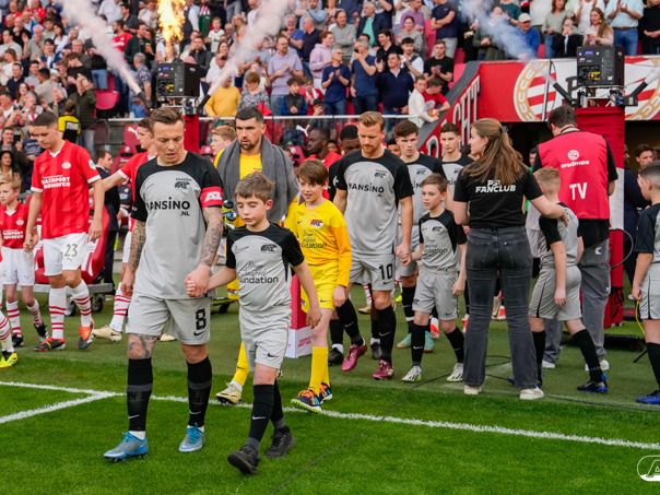 ALKMAAR- Voorafgaand aan de wedstrijd van de PSV - AZ mochten leden van De Waaghalzen & De AllstarZ mee het veld op als spelersescorte. De Waaghalzen & De AllstarZ bij de wedstrijd tussen PSV en AZ in beeld.