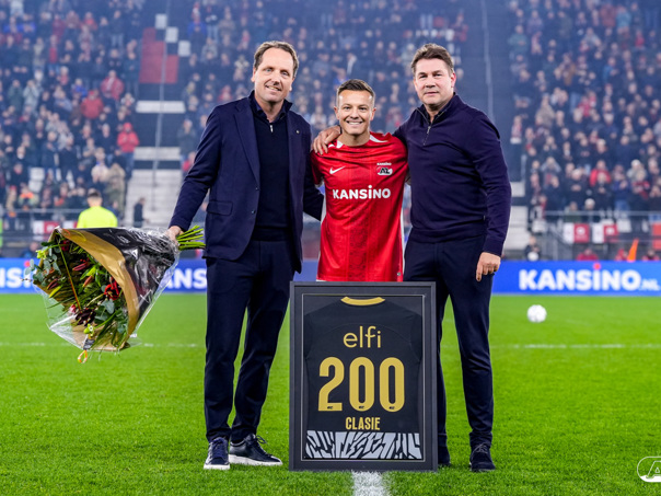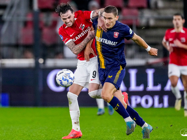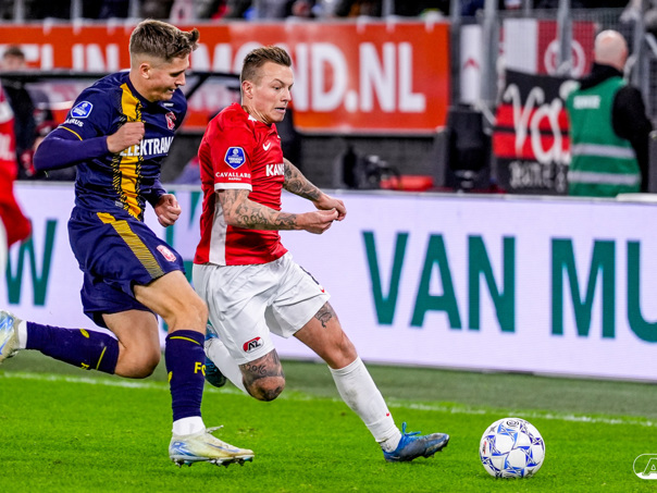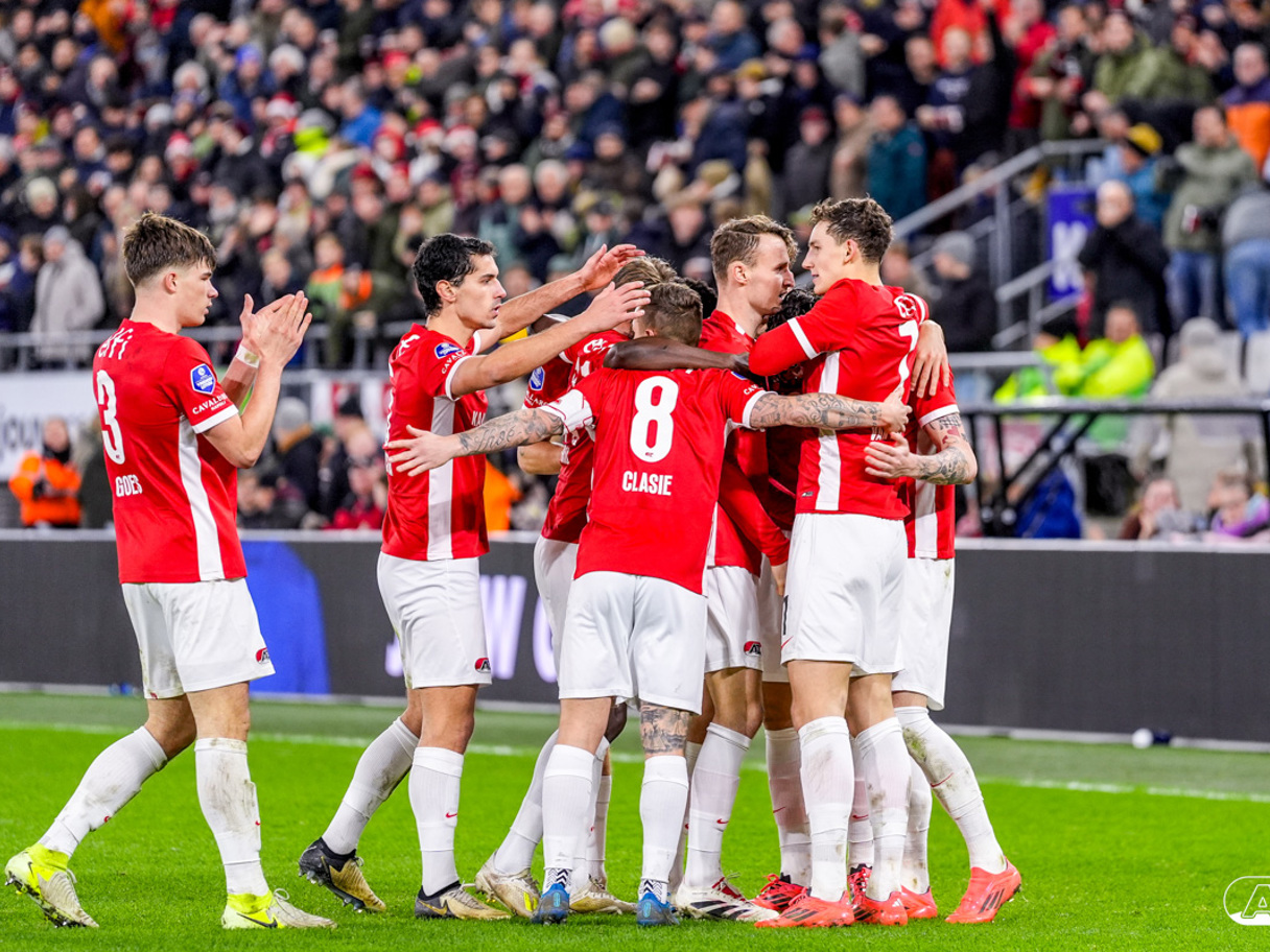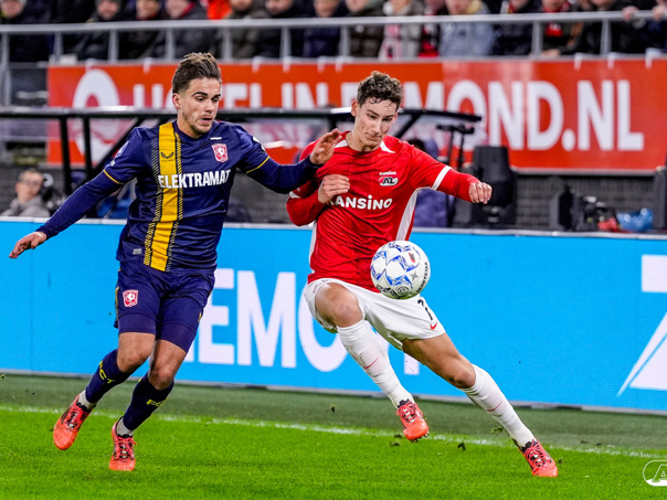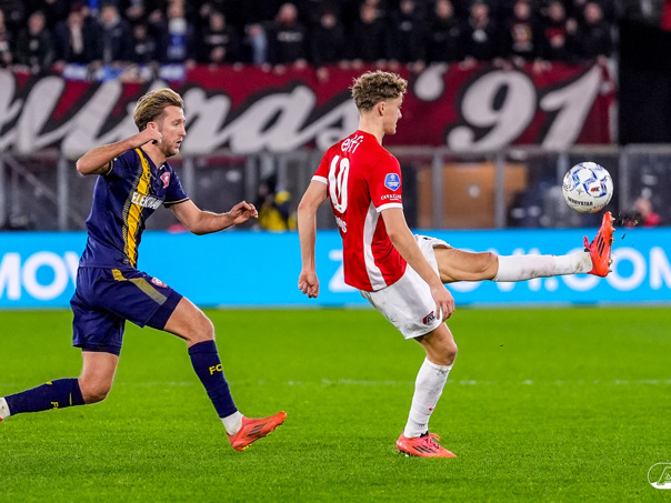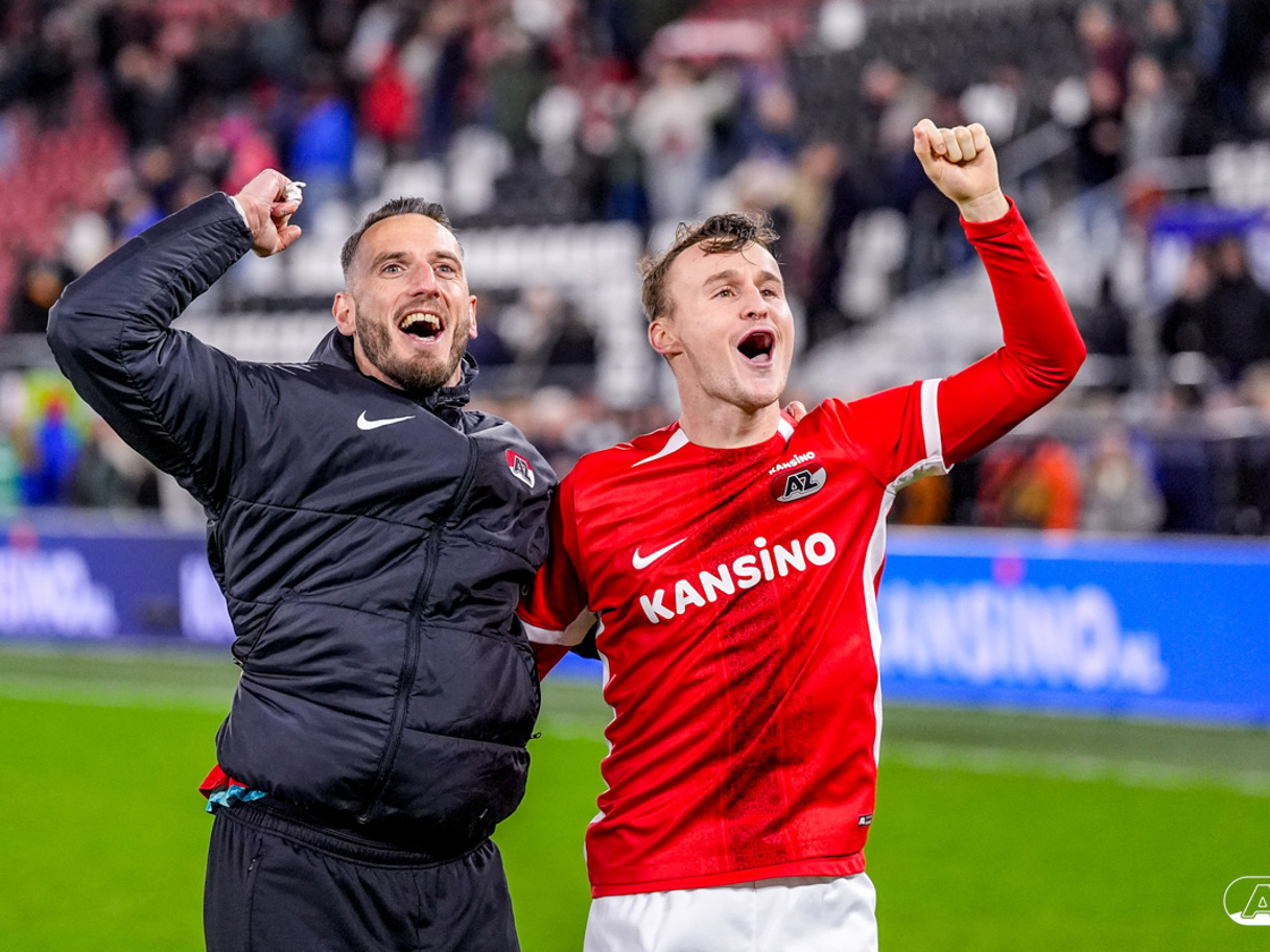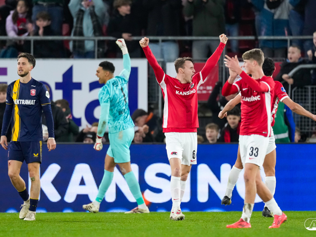 ALKMAAR- AZ boekte zaterdagavond een overwinning op FC Twente. De ploeg van Maarten Martens was na iets meer dan negentig minuten spelen met 1-0 te sterk voor de bezoekers uit Enschede. In het AFAS Stadion werd het winnende doelpunt gescoord door spits Troy Parrott. De zege in beeld. (Foto's: Ed van de Pol).