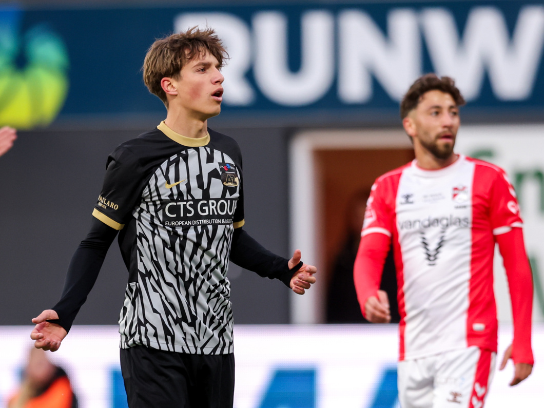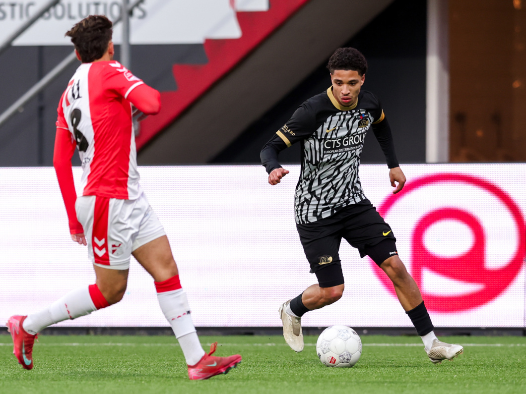 Rio Robbemond legt de bal fraai terug op Elijah Dijkstra, waarna de rechtsback de bal niet tussen de palen krijgt.