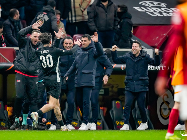 ISTANBOEL- AZ speelde donderdagavond een intense wedstrijd in de UEFA Europa League tegen het Turkse Galatasaray SK. In het Ali Sami Yen Spor Kompleksi RAMS Park eindigde het duel in een 2-2 gelijkspel, wat voor de Alkmaarders voldoende was om zich te plaatsen voor de achtste finales van het Europese toernooi. De confrontatie in beeld. (Foto's: Ed van de Pol).
