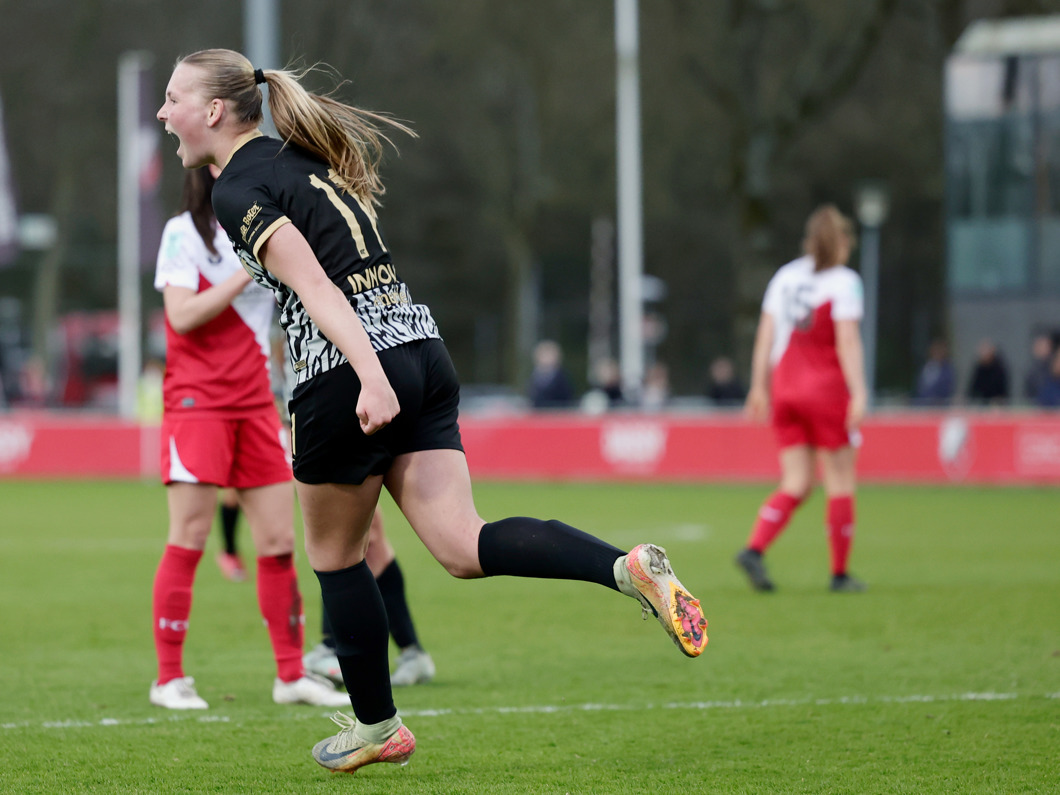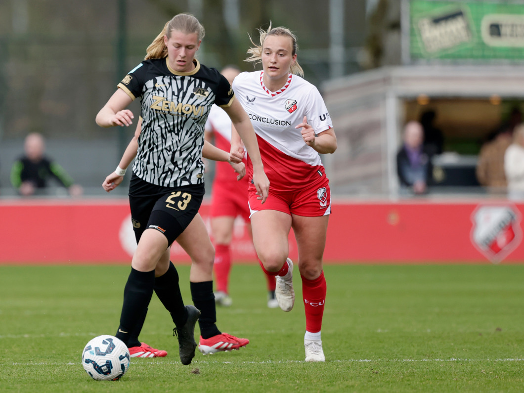 UTRECHT- De AZ Vrouwen wonnen zaterdagmiddag na een spannende wedstrijd op Sportcomplex Zoudenbalch van FC Utrecht. De ploeg van trainer Wouter de Vogel kwam vlak voor rust op achterstand, maar draaide de wedstrijd in de tweede helft om. Dankzij twee treffers van Fieke Kroese keerden de Alkmaarders met een 1-2 overwinning terug naar huis.