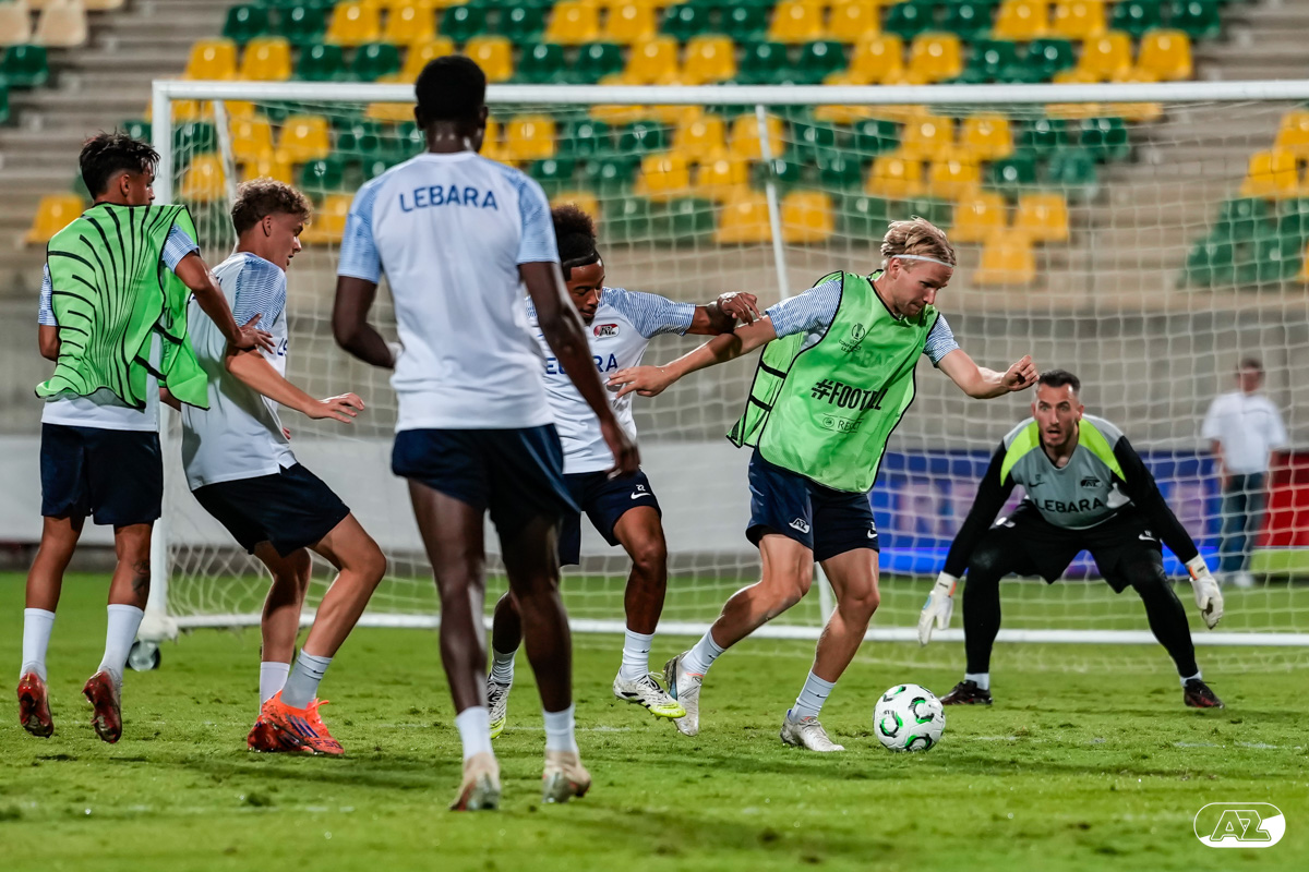 LANARCA- AZ reisde woensdag af naar het Cypriotische Lanarca voor het eerste duel van de competitiefase binnen de UEFA Conference League. Aan het einde van de reisdag stonden Maarten Martens en Alexandre Penetra de pers te woord, voordat de ploeg voor de laatste keer trainde voor de confrontatie. Bekijk hier de gehele dag door de lens van clubfotograaf Ed van de Pol.