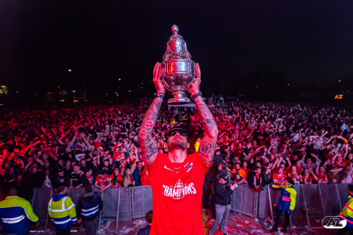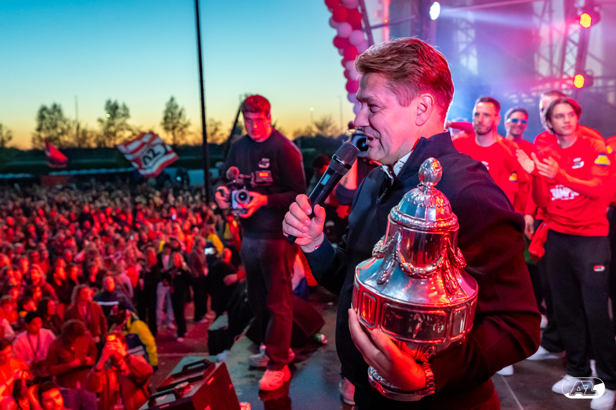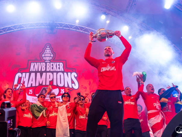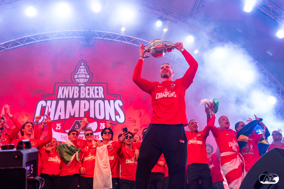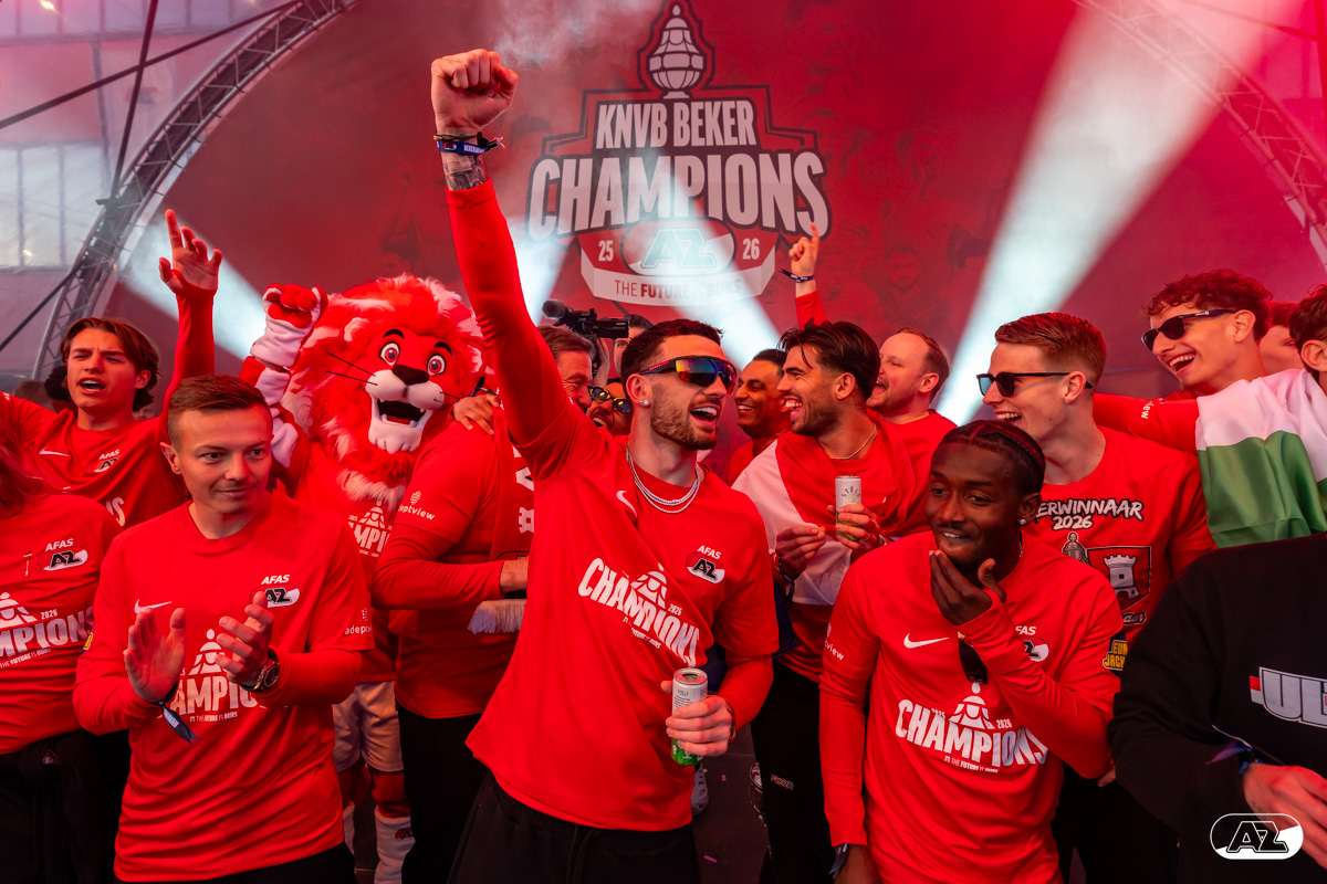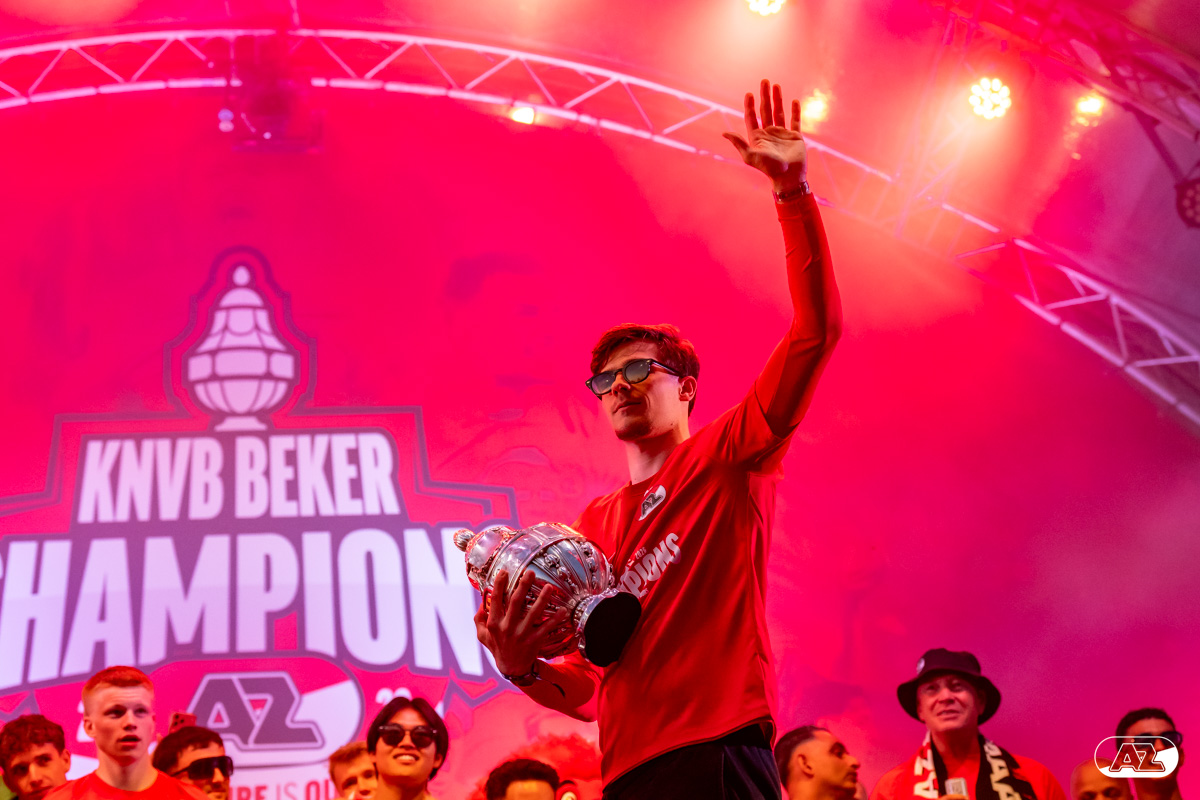 ALKMAAR- AZ vierde dinsdagavond de winst van de Eurojackpot KNVB Beker met een feestelijke huldiging. Na een korte bustour eindigde de avond met een huldiging op P1 bij het AFAS Stadion. Bekijk de huldiging door de lens van fotograaf Ed van de Pol.