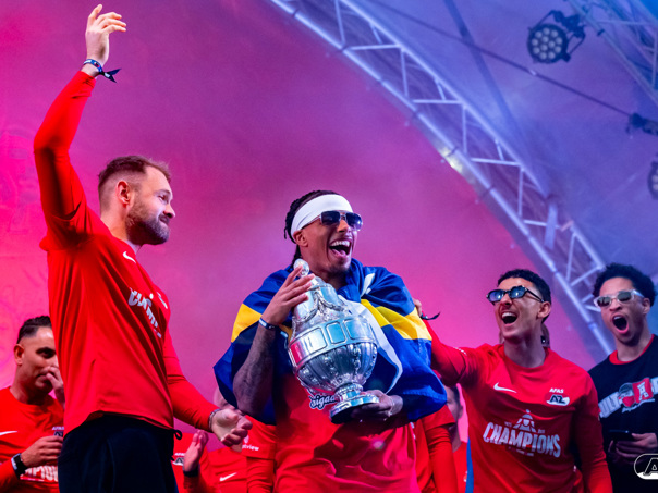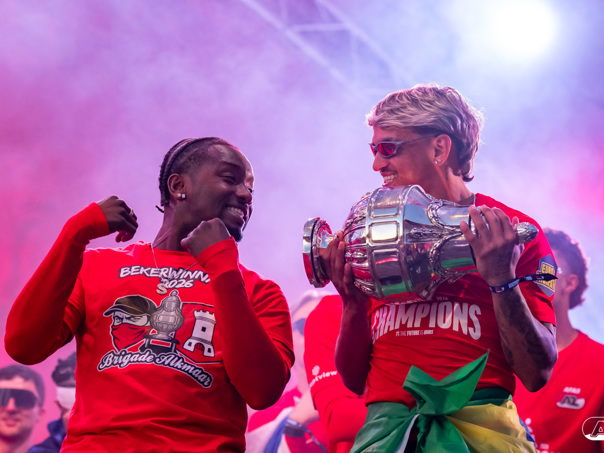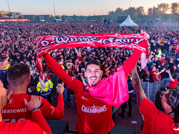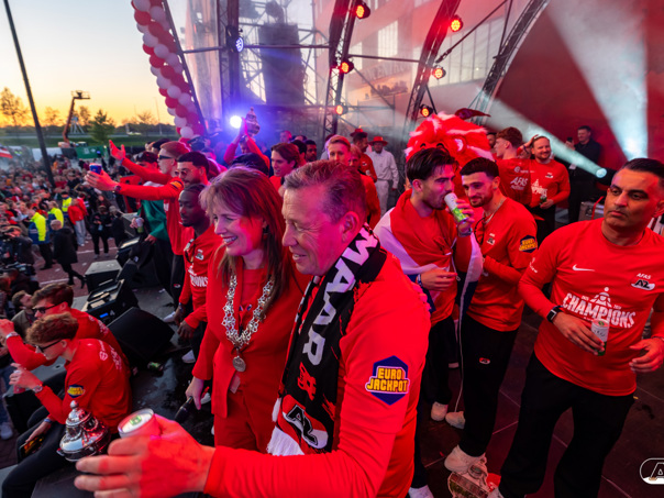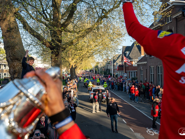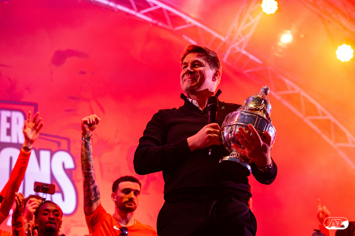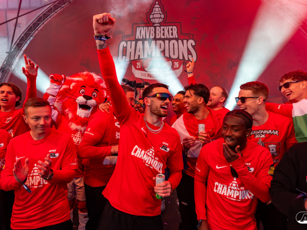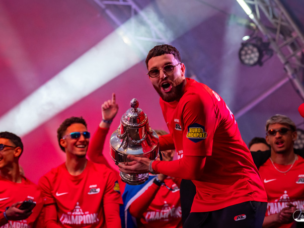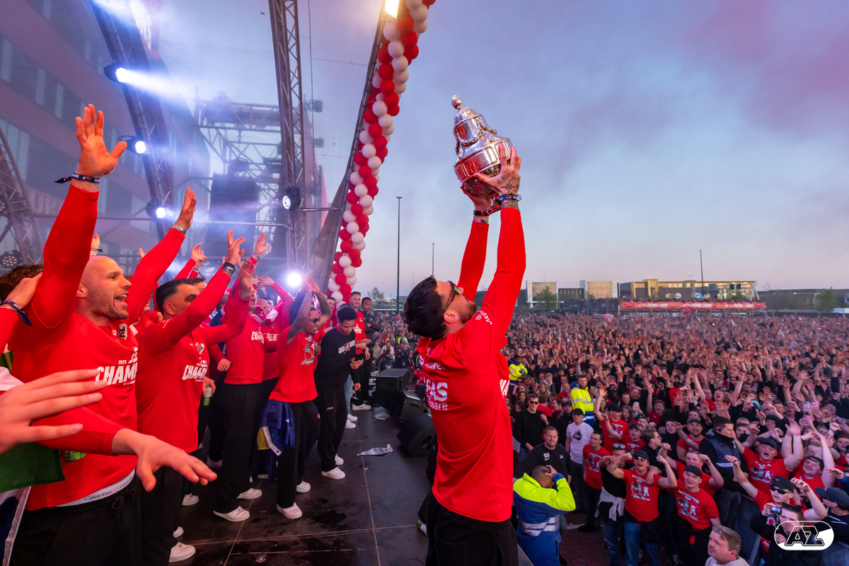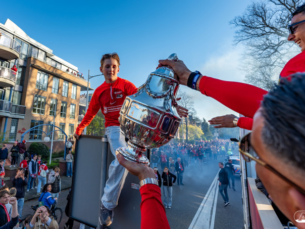 ALKMAAR- AZ vierde dinsdagavond de winst van de Eurojackpot KNVB Beker met een feestelijke huldiging. Na een korte bustour eindigde de avond met een huldiging op P1 bij het AFAS Stadion. Bekijk de huldiging door de lens van fotograaf Ed van de Pol.