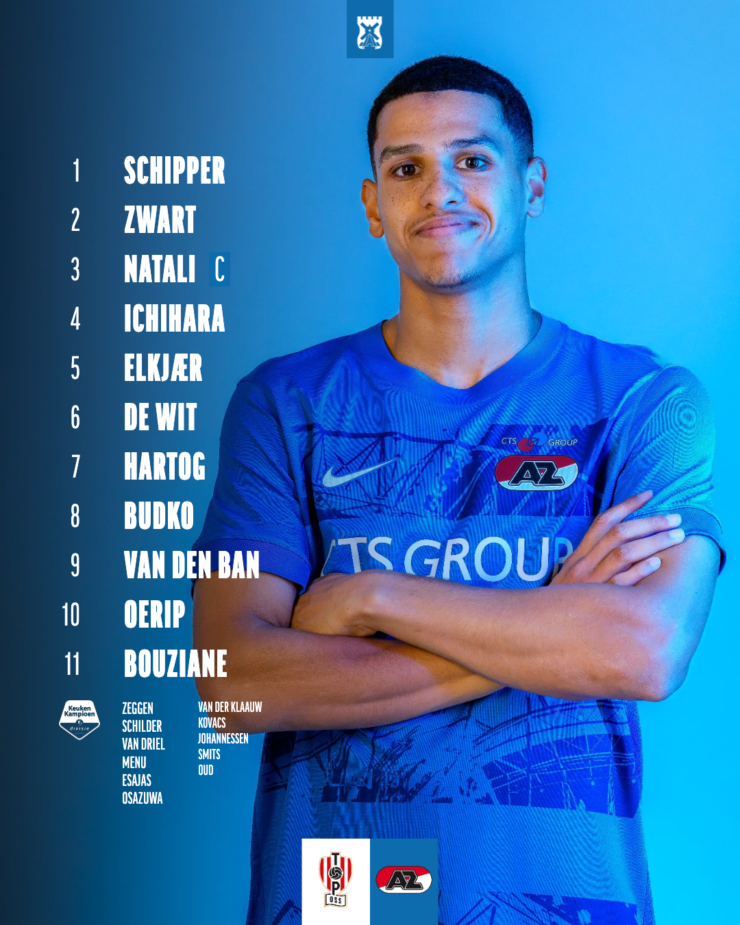Rion Ichihara en Frej Elkjær Andersen maken hun debuut voor AZ. Aanvaller Sydney Osazuwa zit voor het eerst bij de selectie.