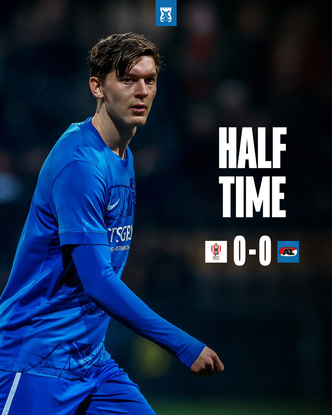 Het eerste gevaar van Alkmaarse kant komt via Yoël van de Ban. De spits breekt door op de flank en probeert het met een afstandsschot, maar de poging wordt onderweg aangeraakt: corner.