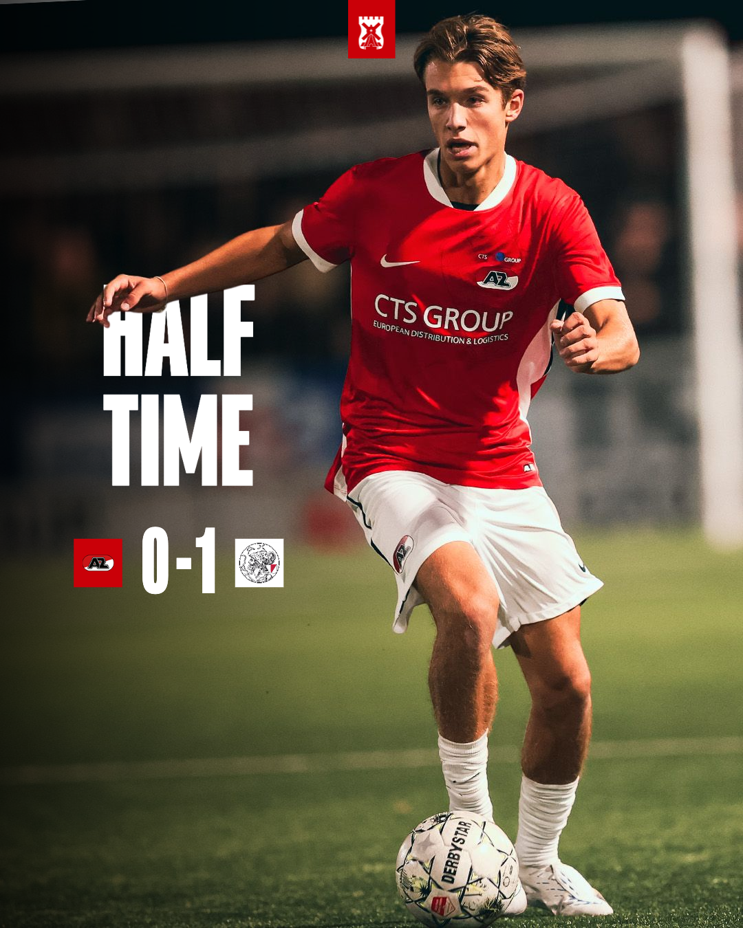 Jong Ajax komt op voorsprong na een eigen doelpunt van de Alkmaarders.
