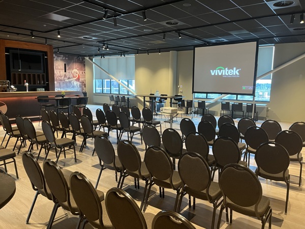 Een intieme ruimte, inclusief bar, audiovisuele ondersteuning en prachtig uitzicht op het hoofdveld.Lees meer