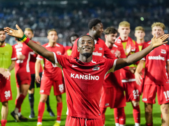 ZWOLLE- Ibrahim Sadiq reageert voor de camera van AZ Media na afloop van het duel met PEC Zwolle. De Ghanese aanvaller was goed voor twee doelpunten vrijdagavond, waarvan zeker de tweede fenomenaal was. Door de overwinning heeft AZ nu zestien punten uit zes wedstrijden.