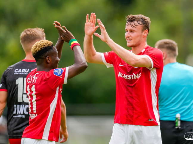 IJMUIDEN- Jong AZ boekte woensdagmiddag een ruime oefenzege op SC Telstar. In het 711 Stadion werd in totaal acht keer gescoord en eindigde het vriendschappelijke duel na honderdtwintig minuten spelen in 1-7 voor de bezoekers uit Alkmaar. Sem van Duijn, Jayen Gerold (twee keer), Yoël van den Ban, Anthony Smits en Adam Ait Ali Oulhaj (twee keer) waren trefzeker namens de beloften.