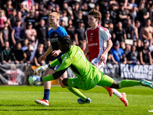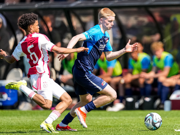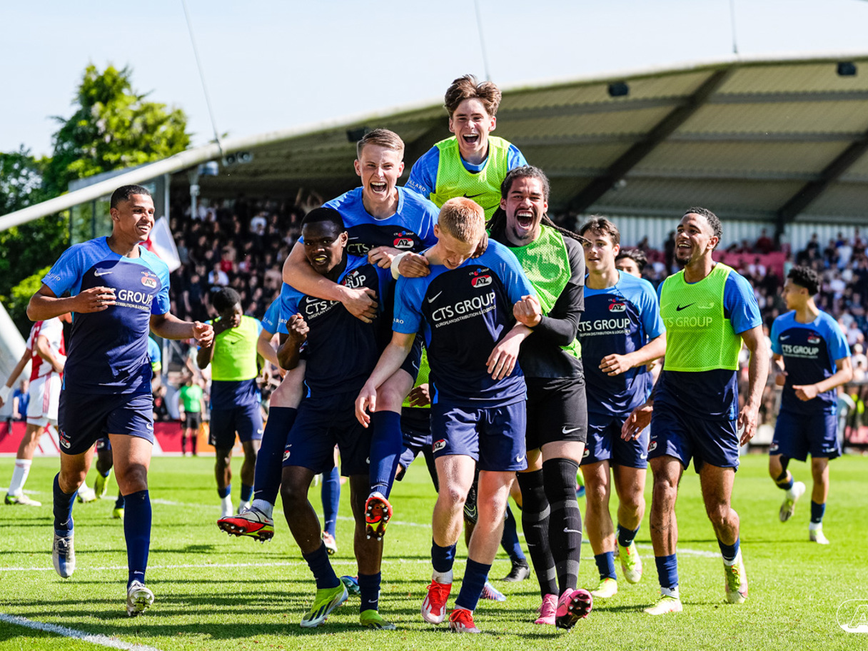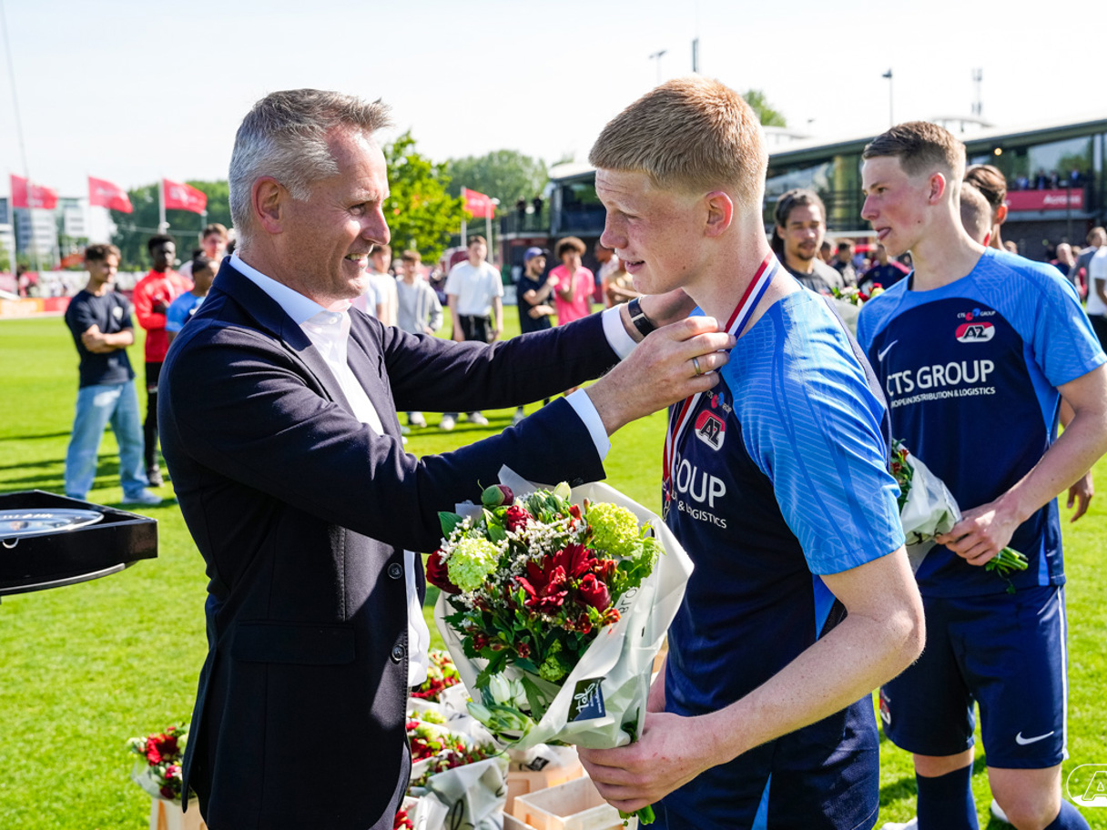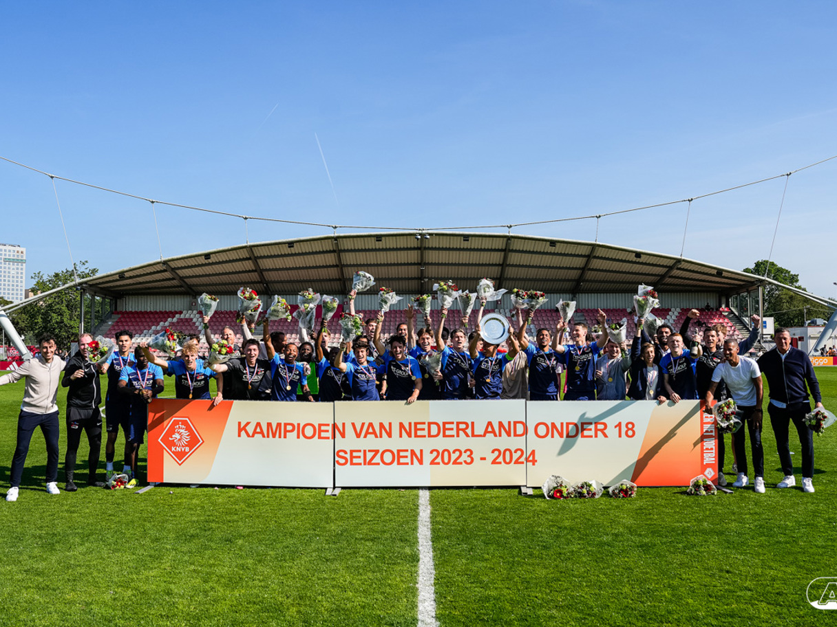 AMSTERDAM- Op sportpark de Toekomst heeft AZ Onder 18 zaterdagmiddag een 0-2 overwinning geboekt op Ajax. Kees Smit was namens AZ tweemaal trefzeker. Door de overwinning is AZ Onder 18 nu landskampioen en heeft het een ticket weten te bemachtigen voor het volgende seizoen van de Youth League. De finale in beeld (Foto's: Ed van de Pol)