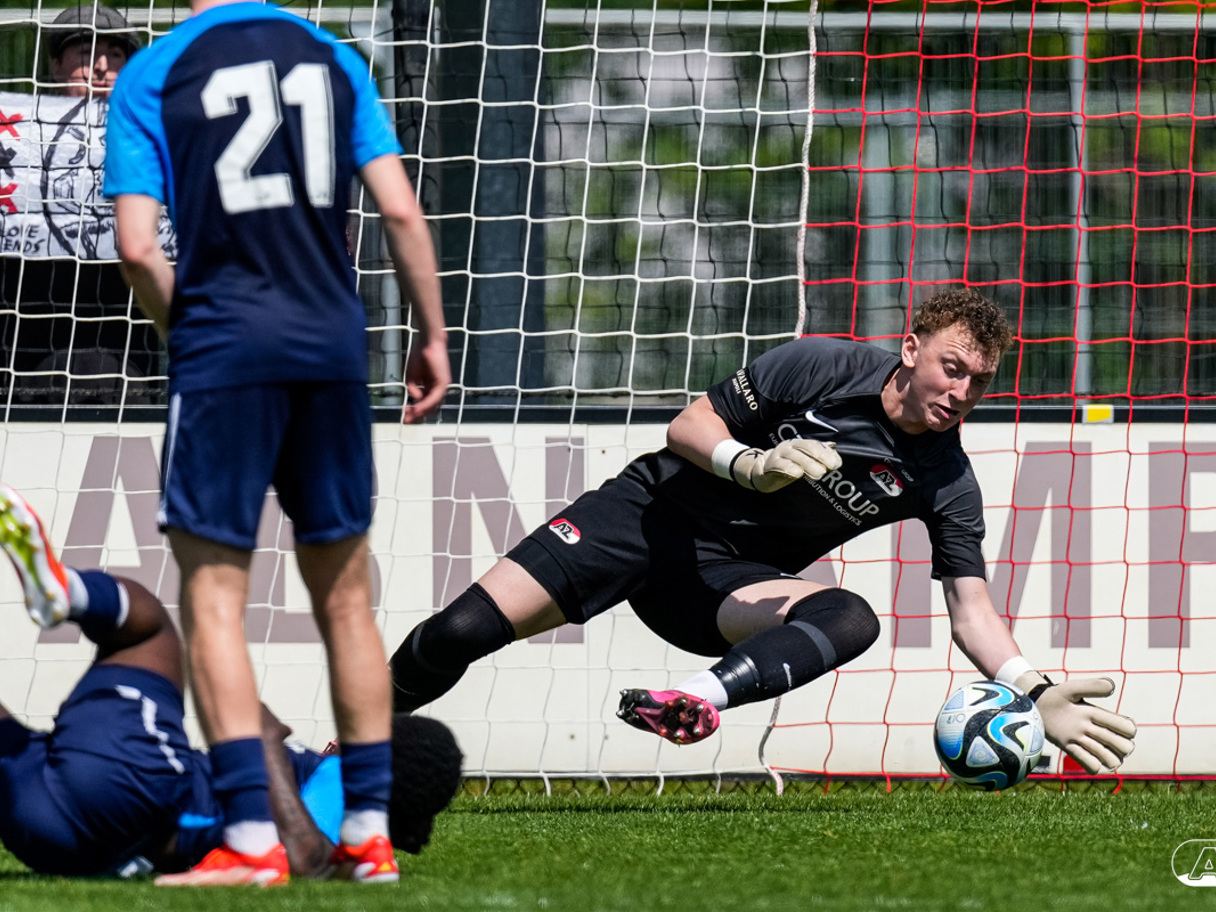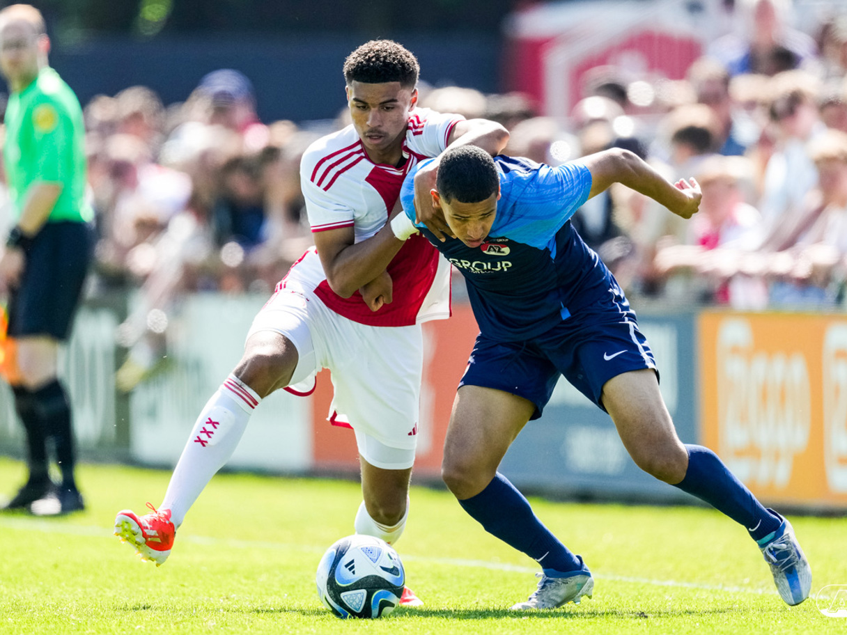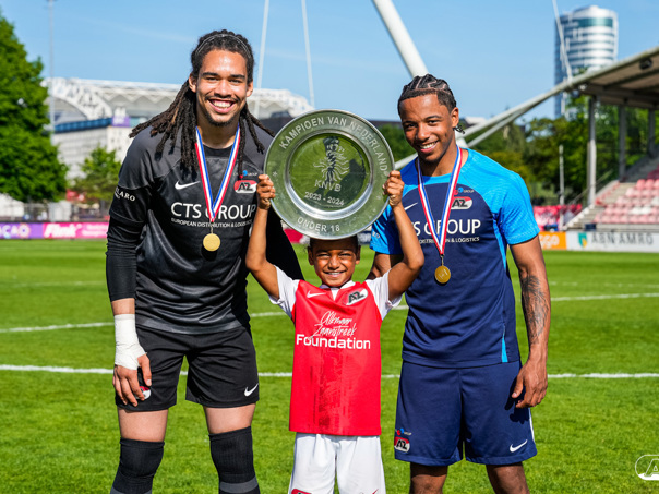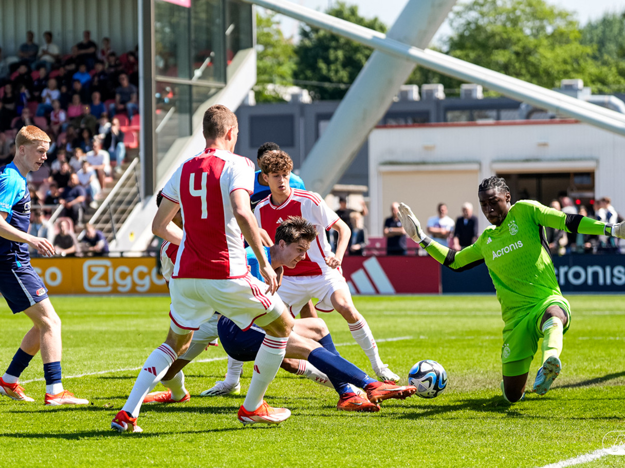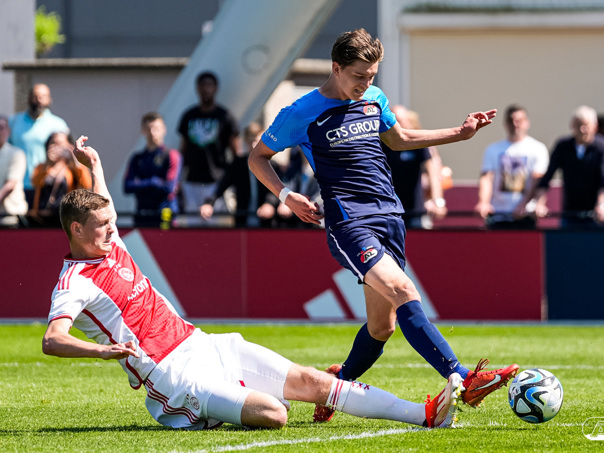 AMSTERDAM- Op sportpark de Toekomst heeft AZ Onder 18 zaterdagmiddag een 0-2 overwinning geboekt op Ajax. Kees Smit was namens AZ tweemaal trefzeker. Door de overwinning is AZ Onder 18 nu landskampioen en heeft het een ticket weten te bemachtigen voor het volgende seizoen van de Youth League. De finale in beeld (Foto's: Ed van de Pol)