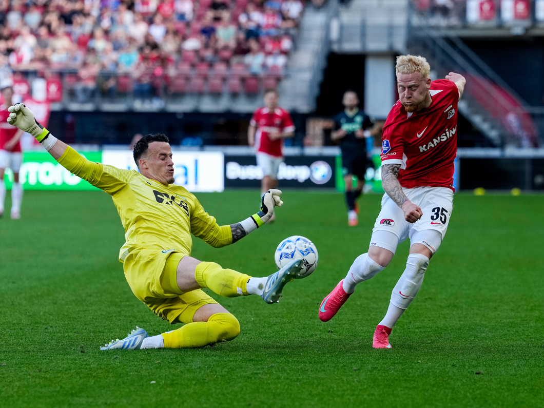 Jeroen Zoet redt op een kopbal van Brynjólfur Willumsson.