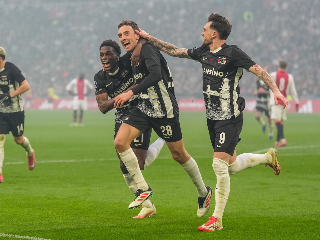 AMSTERDAM- AZ heeft zondagmiddag een punt overgehouden aan het duel met koploper Ajax. In een verhitte tweede helft kwamen de Alkmaarders tot twee keer toe op voorsprong, maar wist het uiteindelijk met tien tegen tien geen drie punten over de streep te trekken: 2-2.