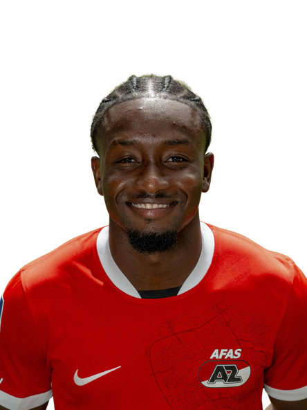 Owusu-Oduro houdt een vrije trap van net buiten de zestien uit zijn doel. AZ staat nog op voorsprong.