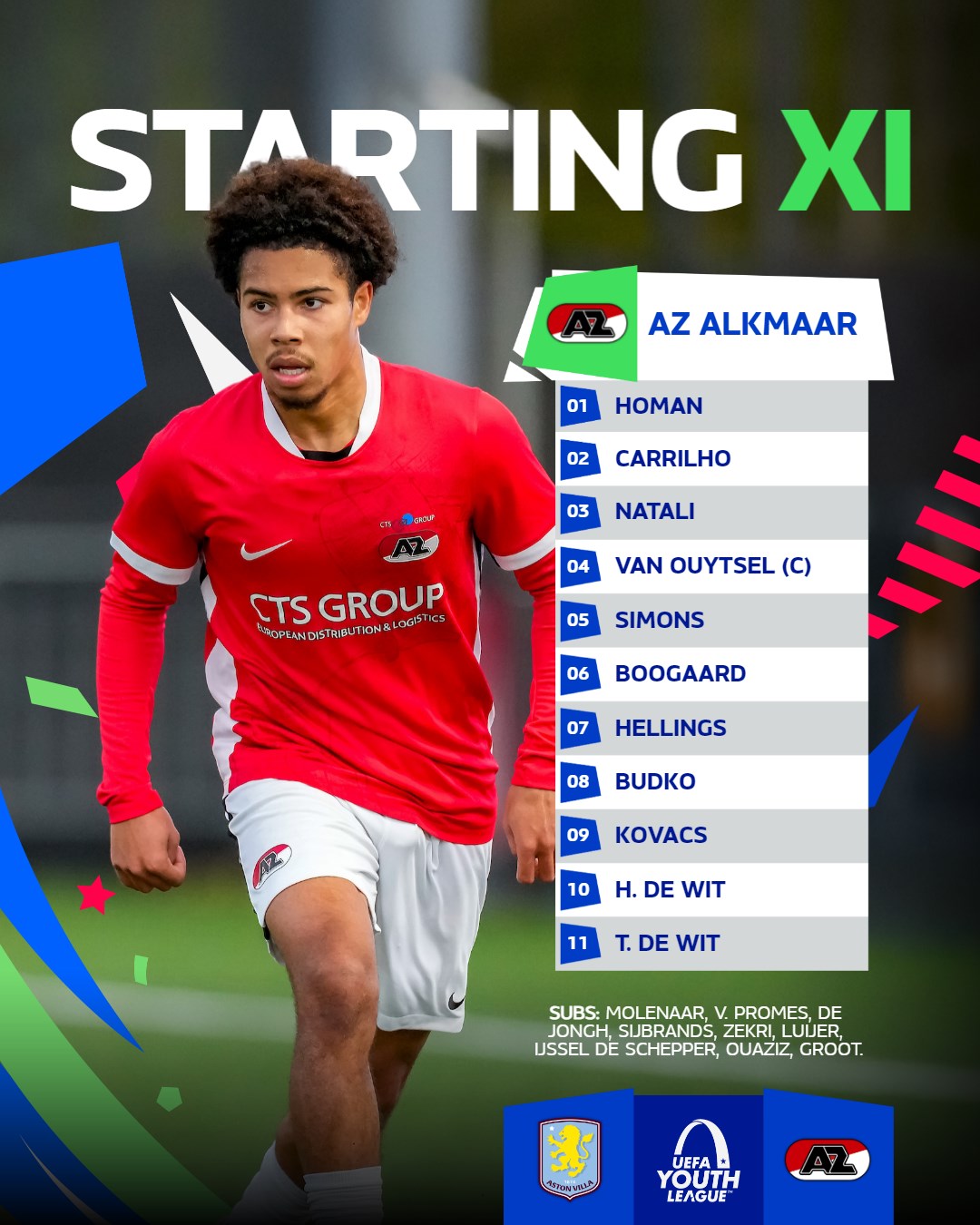 Woensdag 26 november neemt AZ Onder 19 het op tegen Aston Villa voor de UEFA Youth League. Aanvoerder Kevin van Ouytsel en hoofdtrainer Michael van Zijtveld blikken alvast vooruit op dit duel.
