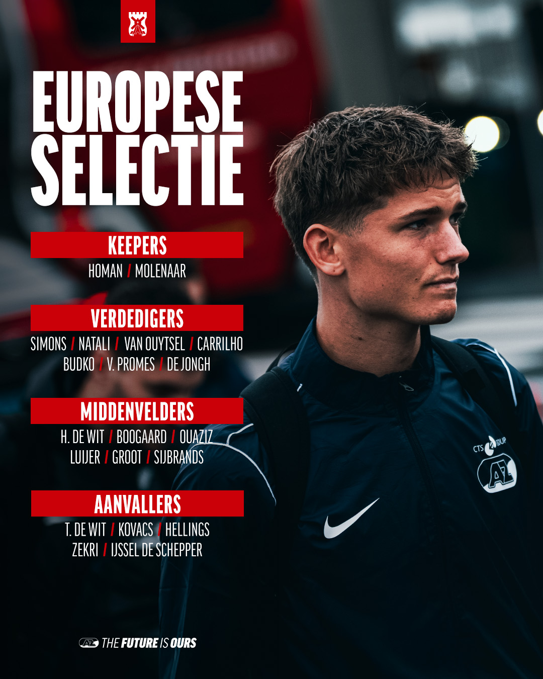 AZ Onder 19 reist met twintig spelers af naar Birmingham voor het duel met Aston Villa.