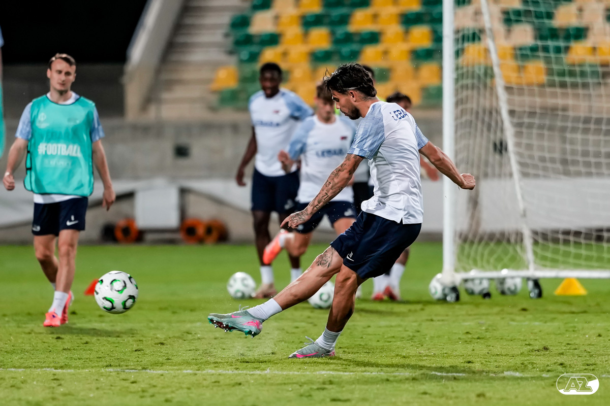 LANARCA- AZ reisde woensdag af naar het Cypriotische Lanarca voor het eerste duel van de competitiefase binnen de UEFA Conference League. Aan het einde van de reisdag stonden Maarten Martens en Alexandre Penetra de pers te woord, voordat de ploeg voor de laatste keer trainde voor de confrontatie. Bekijk hier de gehele dag door de lens van clubfotograaf Ed van de Pol.