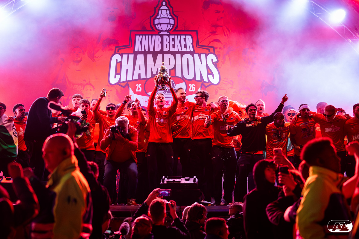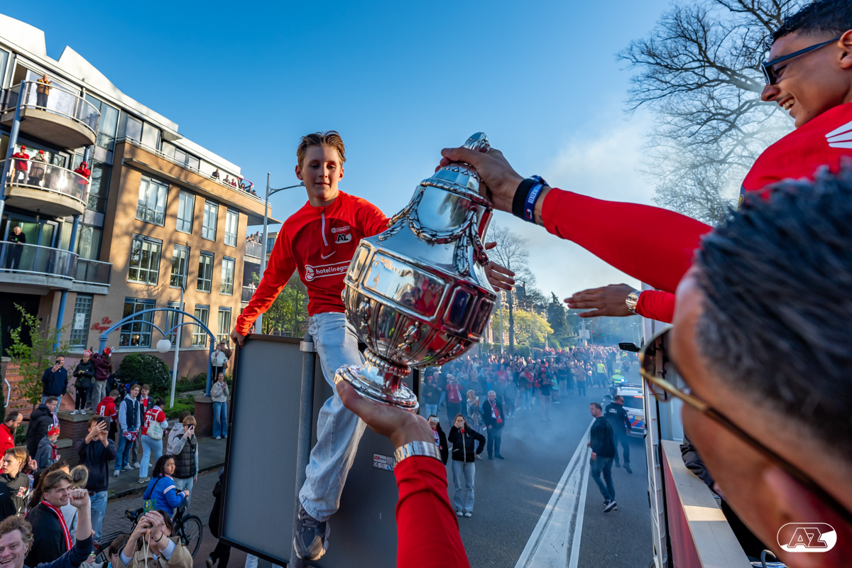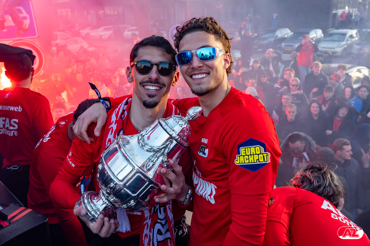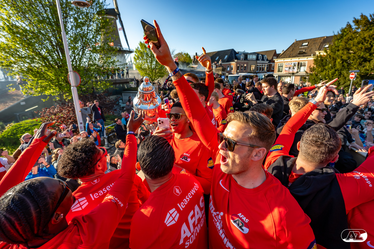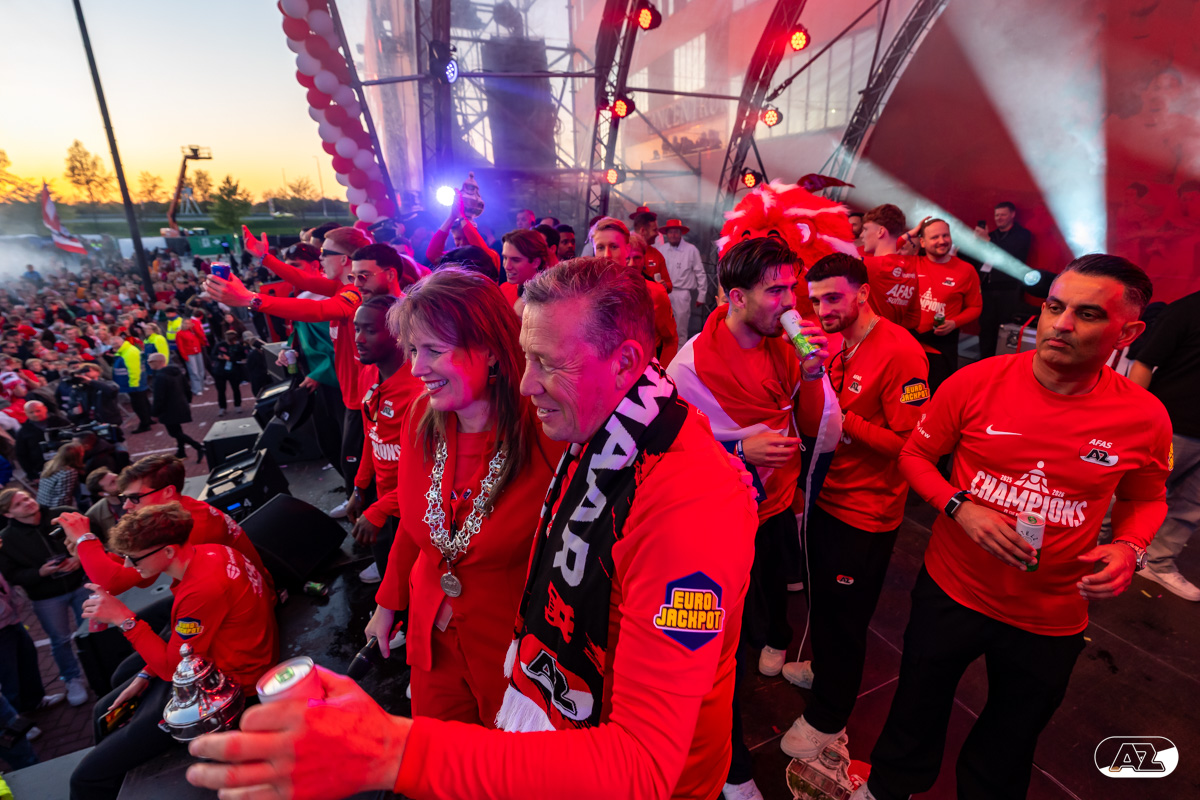 ALKMAAR- AZ vierde dinsdagavond de winst van de Eurojackpot KNVB Beker met een feestelijke huldiging. Na een korte bustour eindigde de avond met een huldiging op P1 bij het AFAS Stadion. Bekijk de huldiging door de lens van fotograaf Ed van de Pol.