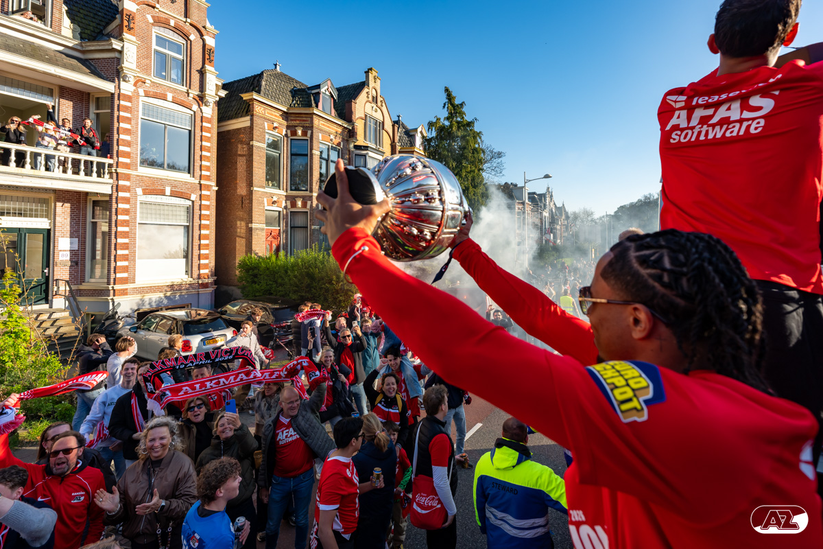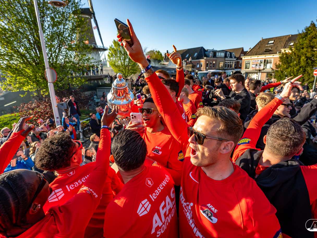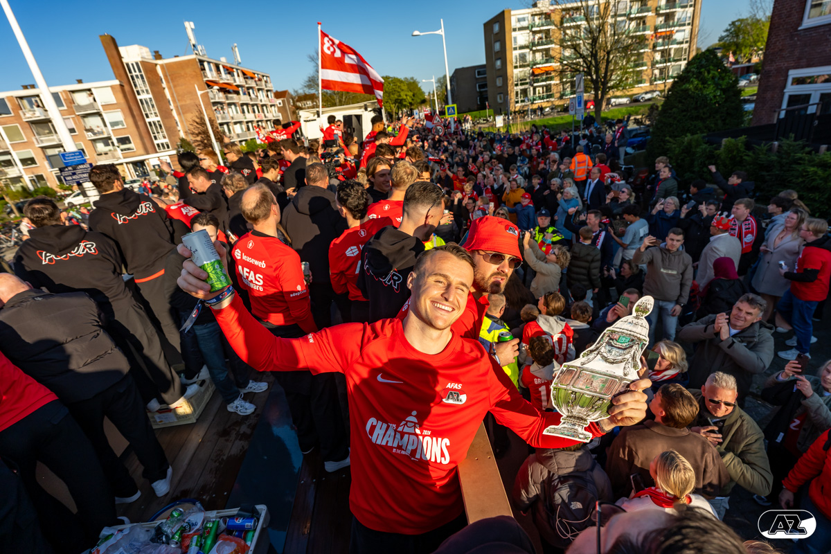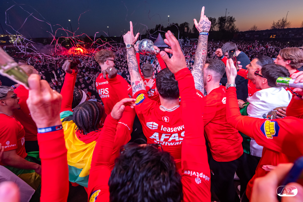 ALKMAAR- AZ vierde dinsdagavond de winst van de Eurojackpot KNVB Beker met een feestelijke huldiging. Na een korte bustour eindigde de avond met een huldiging op P1 bij het AFAS Stadion. Bekijk de huldiging door de lens van fotograaf Ed van de Pol.