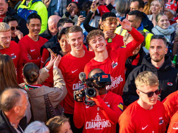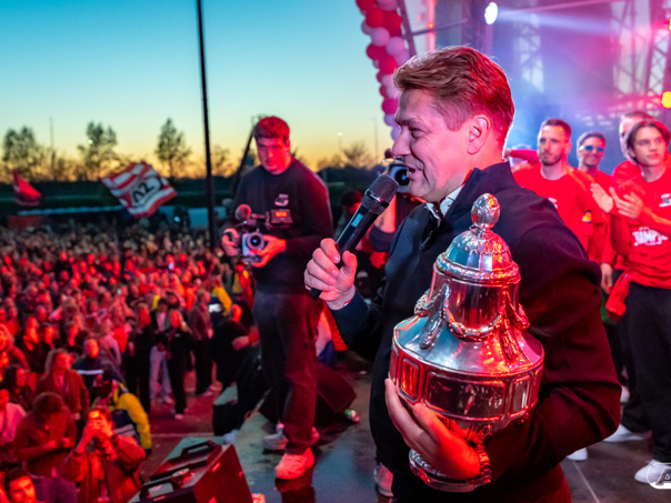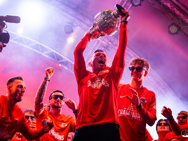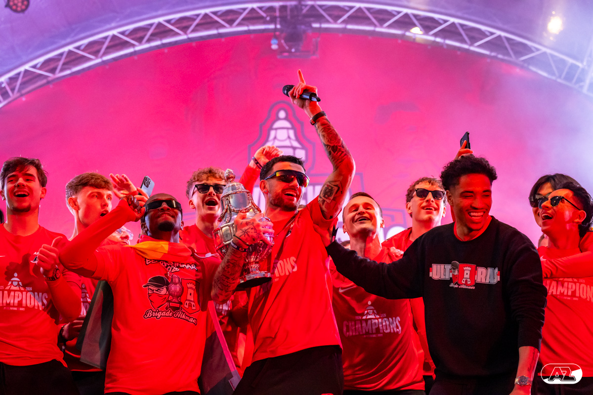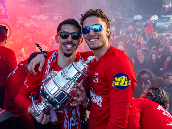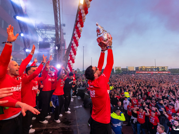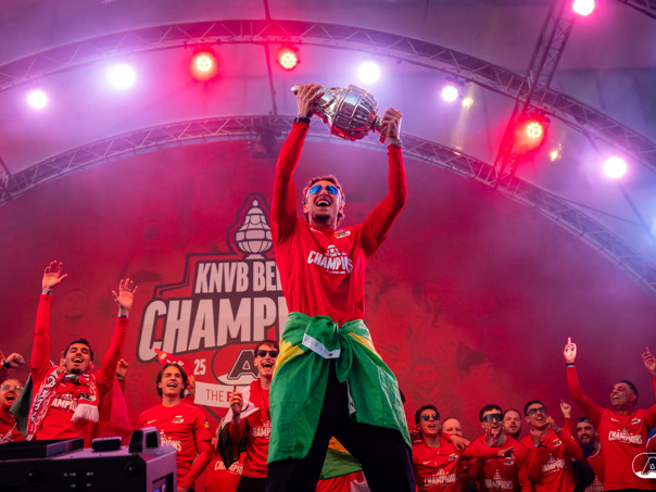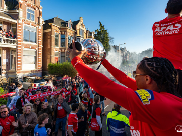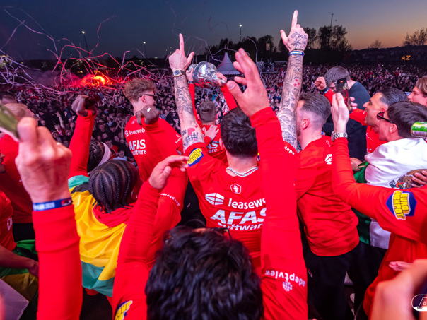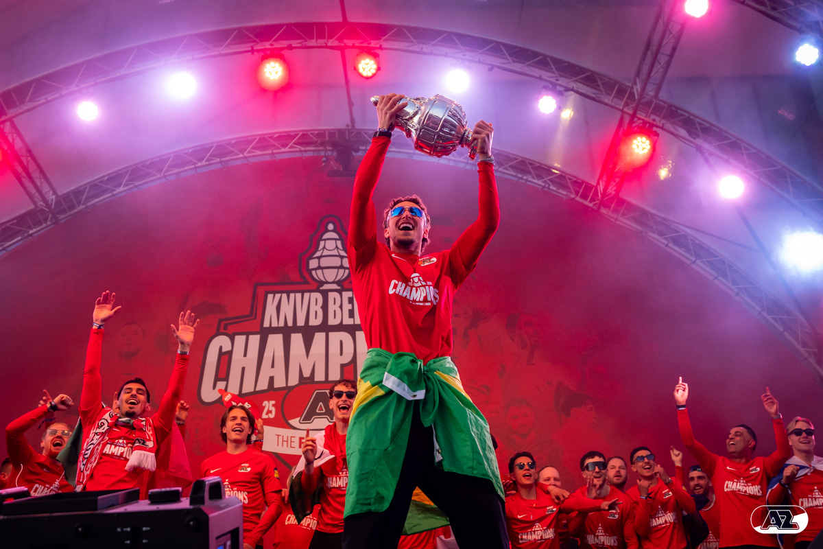 ALKMAAR- AZ vierde dinsdagavond de winst van de Eurojackpot KNVB Beker met een feestelijke huldiging. Na een korte bustour eindigde de avond met een huldiging op P1 bij het AFAS Stadion. Bekijk de huldiging door de lens van fotograaf Ed van de Pol.
