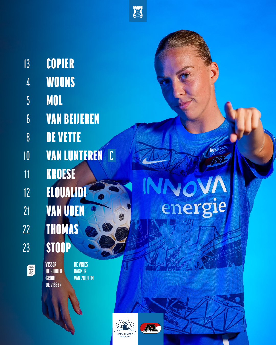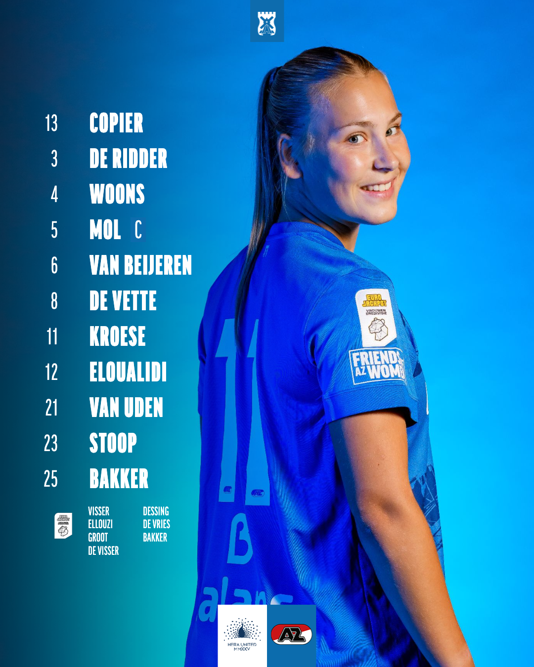 Eshly Bakker zit voor het eerst bij de wedstrijdselectie sinds haar komst naar Alkmaar! Ook Amy de Visser maakt haar debuut in de wedstrijdselectie van AZ.