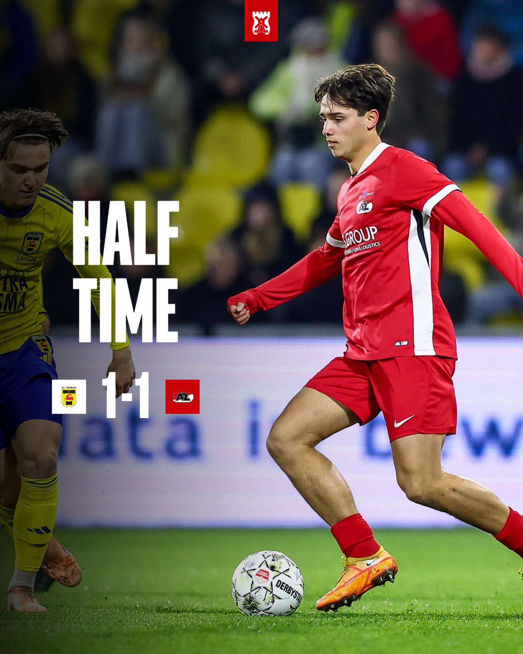 Jong AZ komt er via Oerip gevaarlijk uit. Aan de linkerkant kan hij het strafschopgebied indribbelen en hard voorgeven, maar er is niemand die tegen de bal aan kan lopen.