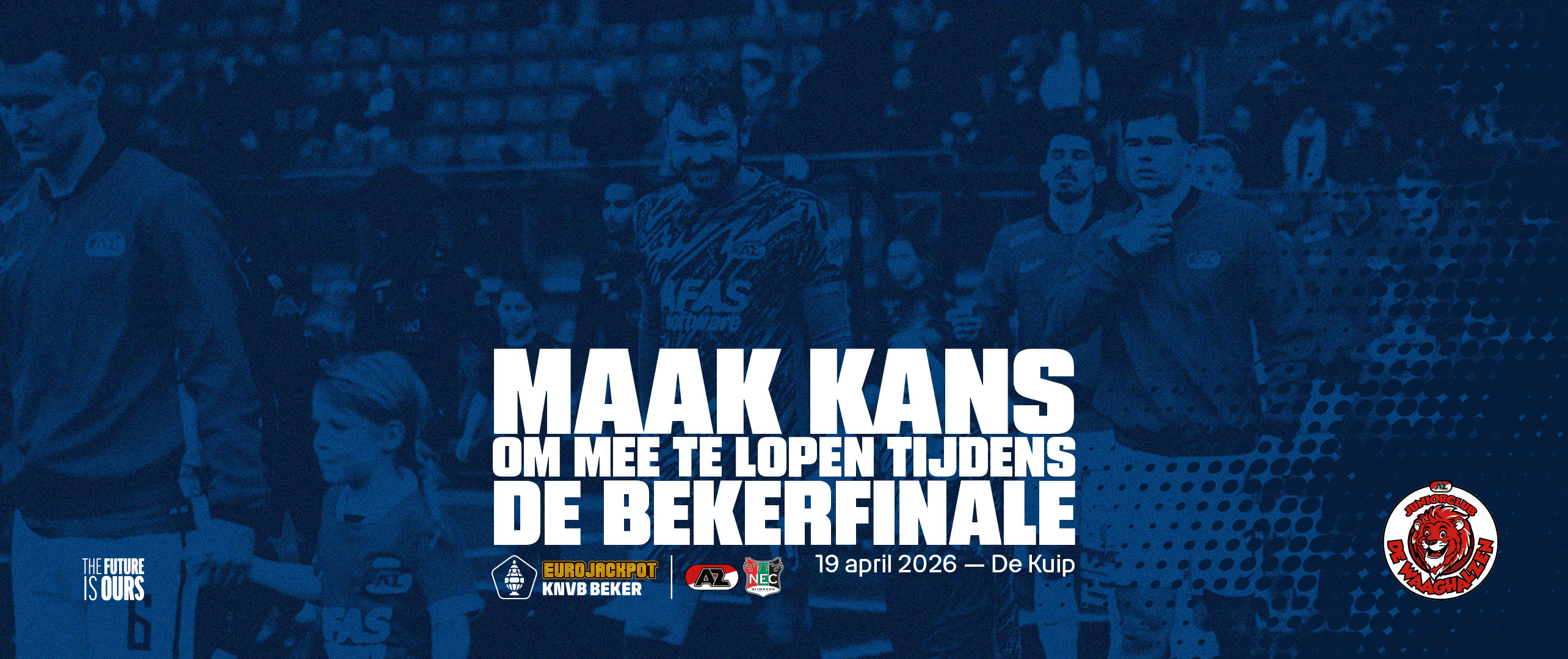 Als Waaghals-lid* kun je nu meedoen aan een superleuke winactie. Beleef de bekerfinale op 19 april tegen N.E.C. van heel dichtbij! Loop samen met een AZ-speler het veld op en win tickets voor de finale. Schrijf je hieronder snel in en win deze fantastische prijs!